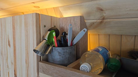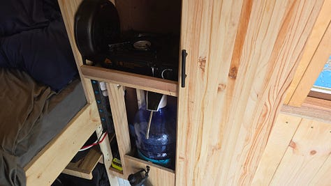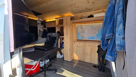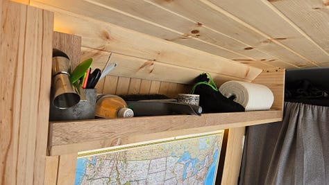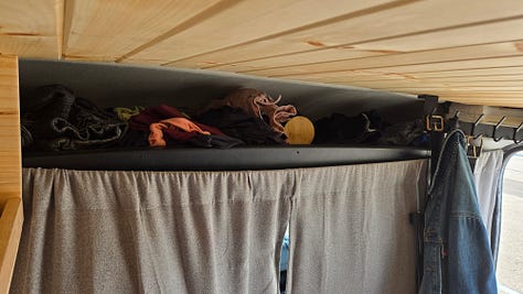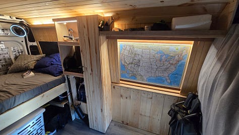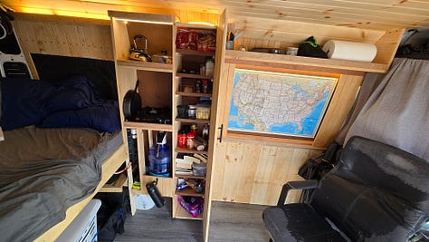 God, damn. I just love it all so much. And you know what? I never would have built it this way if I’d had a bunch of time and money before I set out. I would have done something completely different; something a lot more like that bougie bullshit van I showed you in the last post. With all the time and money in the world, I would have built something I wouldn’t like half as much as this. I only knew what to build because I spent that month on the road fighting for every movement, every shred of space. I was only able to plan this out and get everything in its right place because I’d endured every possible combination of ‘wrong’ possible.