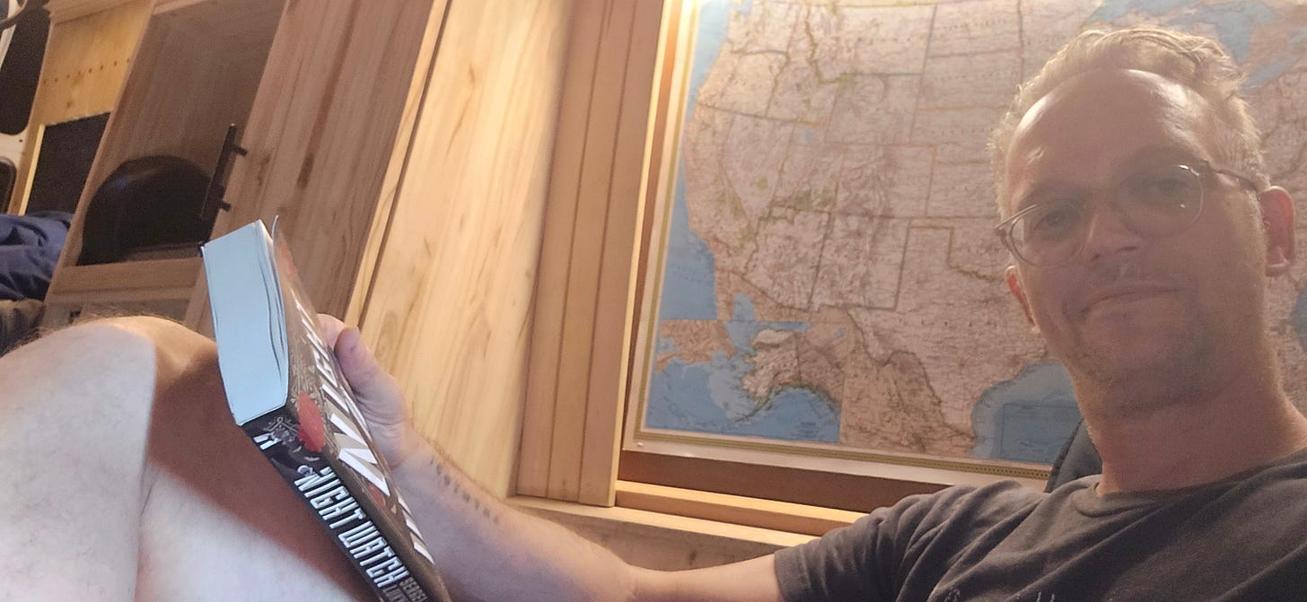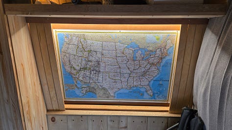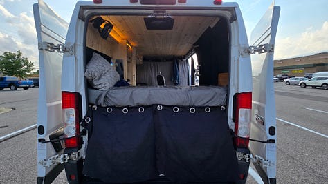 So when I landed back in Cleveland and in the warm embrace of my buddy’s driveway, I stripped everything out of the van, pulled down all of the shit on the walls, unstrapped all the crap from the ceiling, and cleaned that son of a bitch within an inch of its life. It was incredibly carthartic! Felt a lot like it feels to throw away a first draft of a book; scour the page down to only what shines, and rebuild from there. It’s one of my favorite parts of writing, and stripping this van down was one of my favorite parts of this adventure so far. Just sitting in that bare space with a pen and paper, looking at it, thinking. Planning.