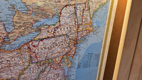 Not gonna lie, kids; I’m proud of this. All credit to Rick Fournier for the idea; he’s been tracking his travels in highlighter on a map for many years, and it is so cool to see where he’s been and what he’s done. I’ve also loved maps since I was a kid; one of my favorite jobs I ever had was as a cartographer. This National Geographic road map was the most expensive part of this whole build and it was WORTH EVERY PENNY.